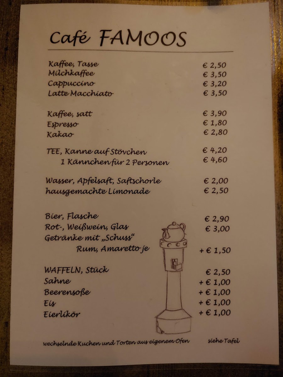 The menu showcases a delightful array of homemade cakes and freshly prepared waffles, all paired perfectly with a robust selection of coffee and fragrant Friesentee. Guests rave about the scrumptious self-baked delights, particularly the pear-blueberry cake, which promises a nostalgic indulgence.